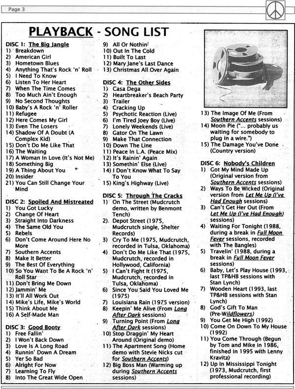 Also included in the package is an 84-page booklet featuring rare photos, track-by-track comments on each of the songs by Tom and the Heartbreakers, and an in-depth biography of the band by veteran rock journalist Bill Flanagan. Tom and the Heartbreakers' comments throughout are startlingly candid and honest -- detailing disagreements between band members, the inside history of their various controversies and legal battles, and differing opinions about the merits of individual songs and albums. It is a remarkably informative and revealing look at Tom Petty and the Heartbreakers, even for those who've closely followed the band. The PLAYBACK box also contains a laminated backstage pass from the group's 1989 "Strange Behavior" tour and a poster of the band in the recording studio.