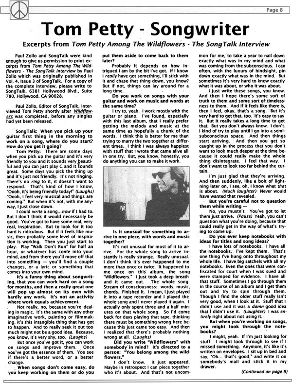 Many of you have written to Tom to ask him about his personal songwriting process. SongTalk Editor, Paul Zollo did a great interview with Tom recently which covers that subject in detail ... I thought you'd like to see excerpts of that interview.